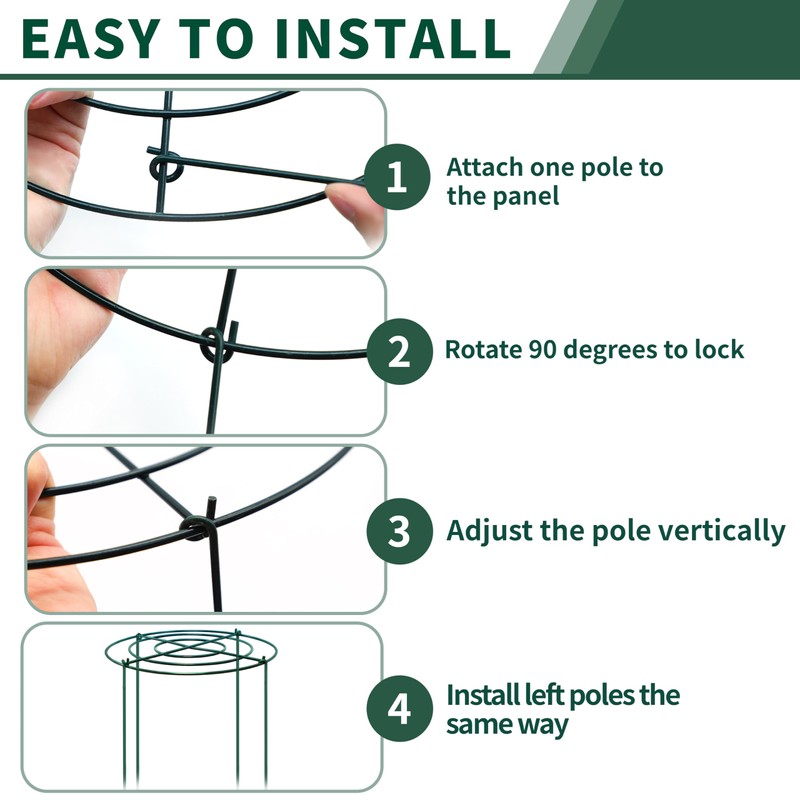 - 【Simple to Use】Our peony cages are designed for easy assembly. Simply connect the four support legs to the metal ring, and your plant support is ready to go. This user-friendly setup process ensures hassle-free use for gardeners of all levels