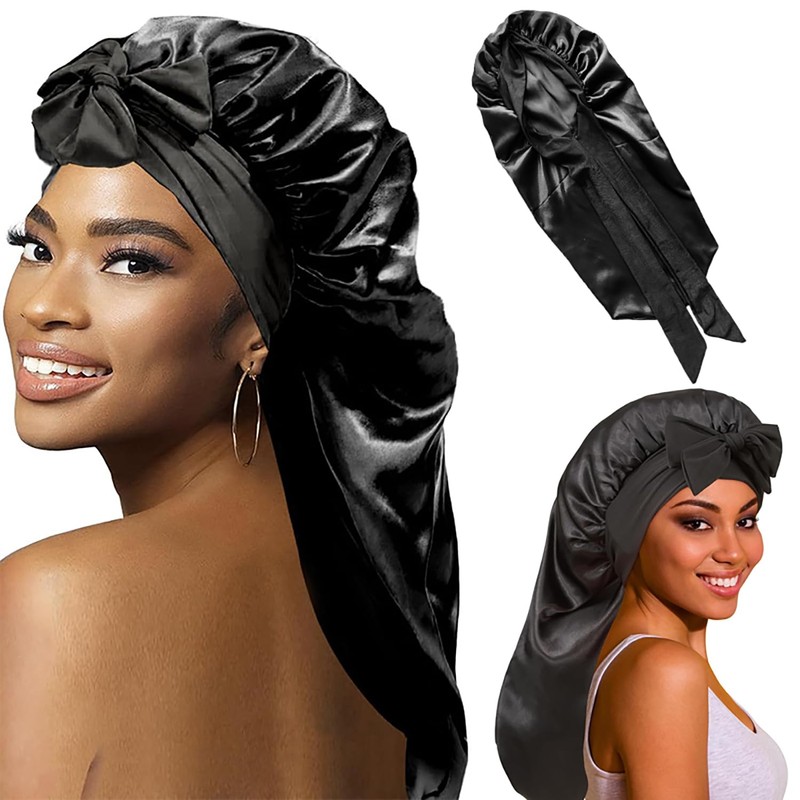 - Protects the hair: the long hair silk big sleeping hat preserves the maximum moisture in the hair, gives it shine and elasticity, which not only prevents split ends and hair breakage, but also reduces hair loss