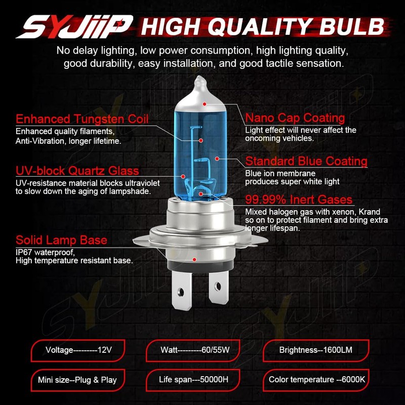 - Plug n play - SYJIIP Halogen headlight is 1:1 size with original halogen lamp, truly plug and play, easy to install. It is recommended to seek professional installation to avoid any issues.