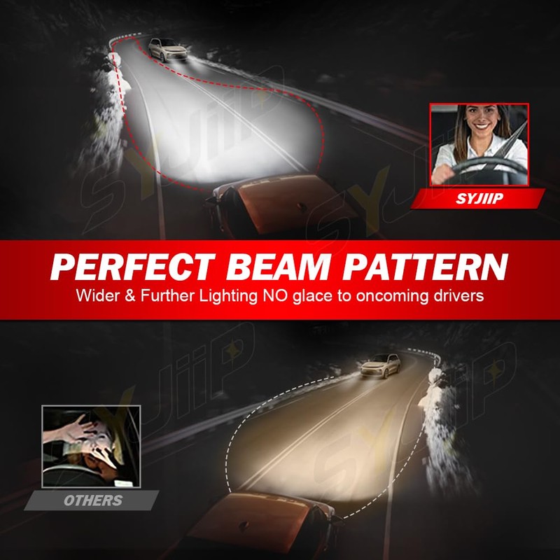 - Safe driving vision - Is it better for the headlights to be brighter? No, the headlights have a safe field of view and beam patterns. SYJIIP halogen lamps provide a perfect beam of light, without black spots in the field of view, illuminating oneself while also being safe for others.