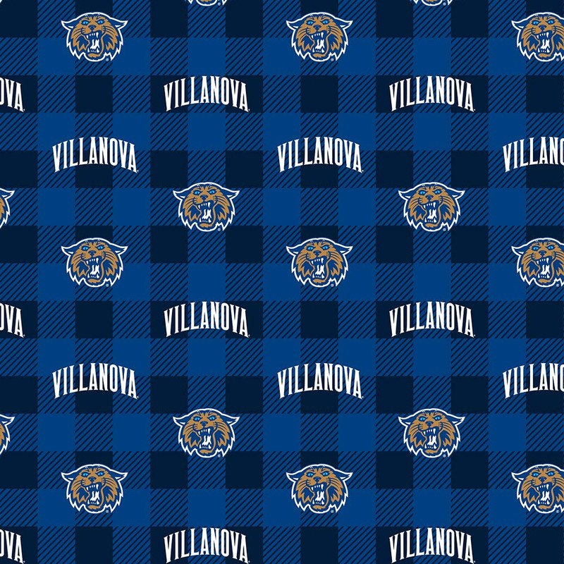 SYKEL ENTERPRISES Villanova University Fleece Blanket Fabric-Villanova Fleece Fabric with Buffalo Plaid Design