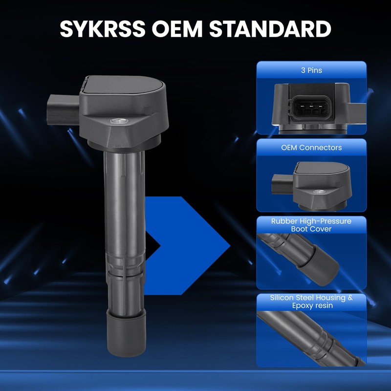 - PREMIUM IGNITION COIL MATERIALS: Precision-engineered with silicon steel cores, German enameled copper wiring, Japanese epoxy resin, and reinforced rubber sleeves for heat/voltage resistance. Built to prevent cracking, shorts, and premature failure.