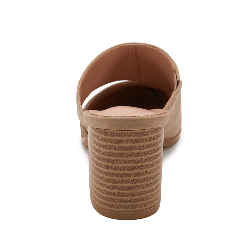 Syktkmx Womens Cutout Backless Chunky Stacked Mules Slip On Closed Toe Scale Heeled Sandal Shoes Khaki