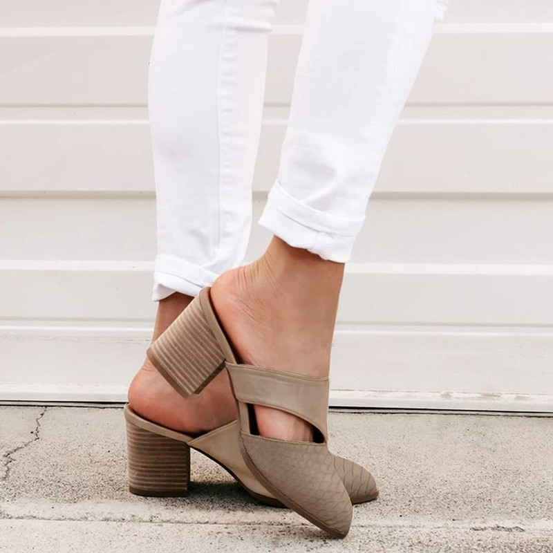 Syktkmx Womens Cutout Backless Chunky Stacked Mules Slip On Closed Toe Scale Heeled Sandal Shoes