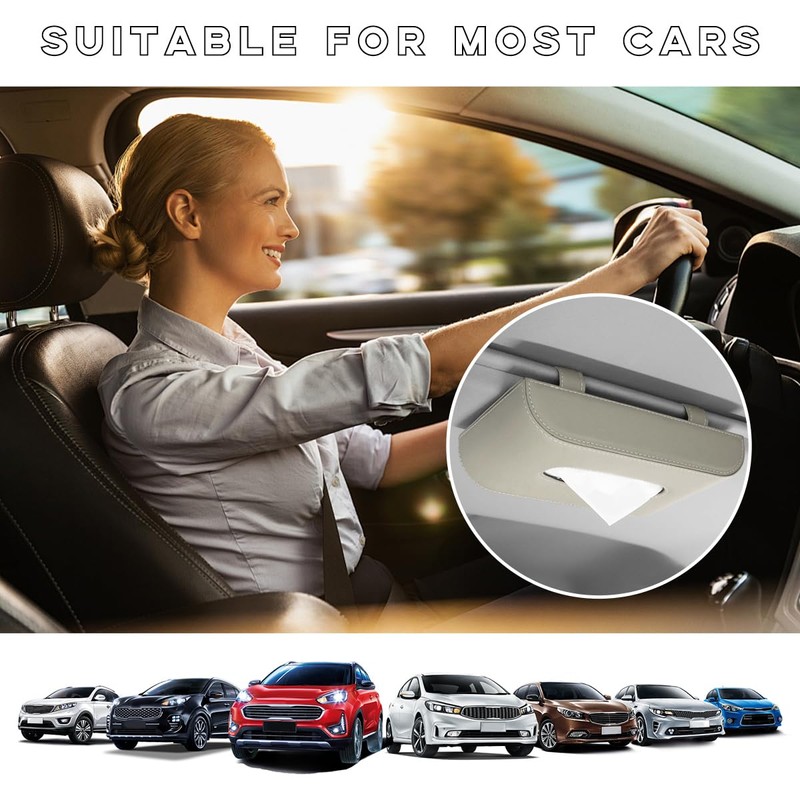 - 【Wide Application】: This tissue holder fits universally for various vehicles, whether they are cars, SUVs or trucks. It can be used on the car visor, car door, sunroof or backbeat pocket. You can also use it at home or in the office. Additionally, it can be used not only for organizing paper towels but also for storing other items of the right size.