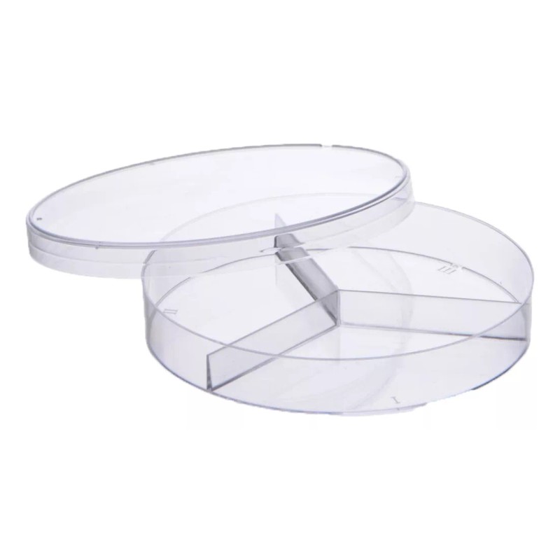 Sym Caja Petri 100x15mm Plastico Desechable C/3 Divisiones C/50