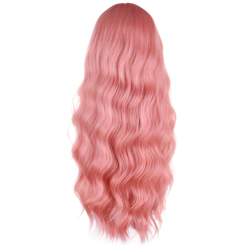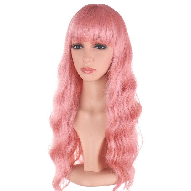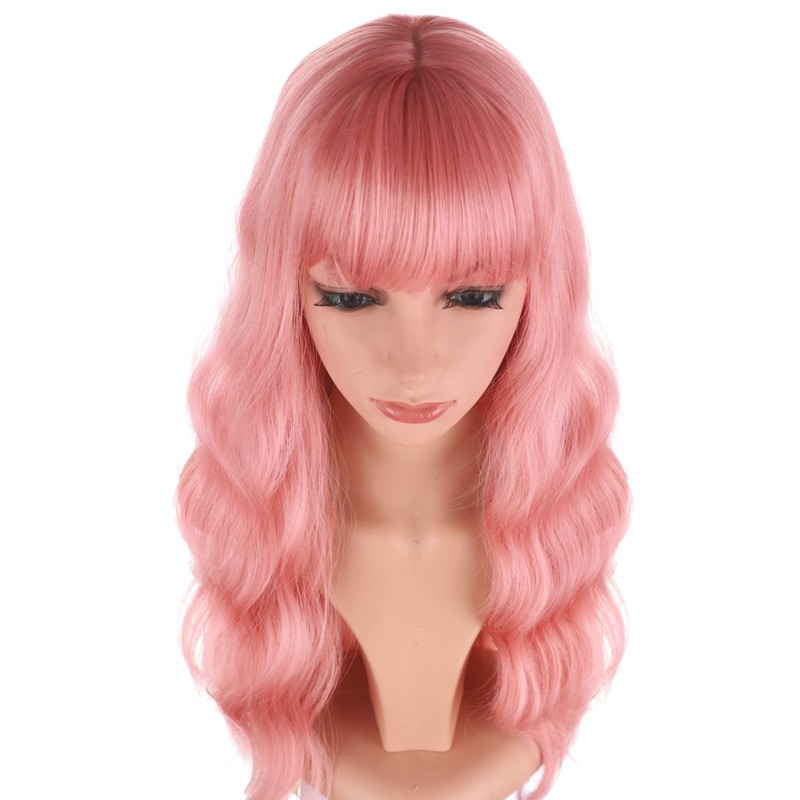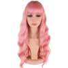 SYMEIW Pink Hair Wavy Wigs With Bangs For Women Synthetic Pink Wigs For Daily Use Everyday Wear.