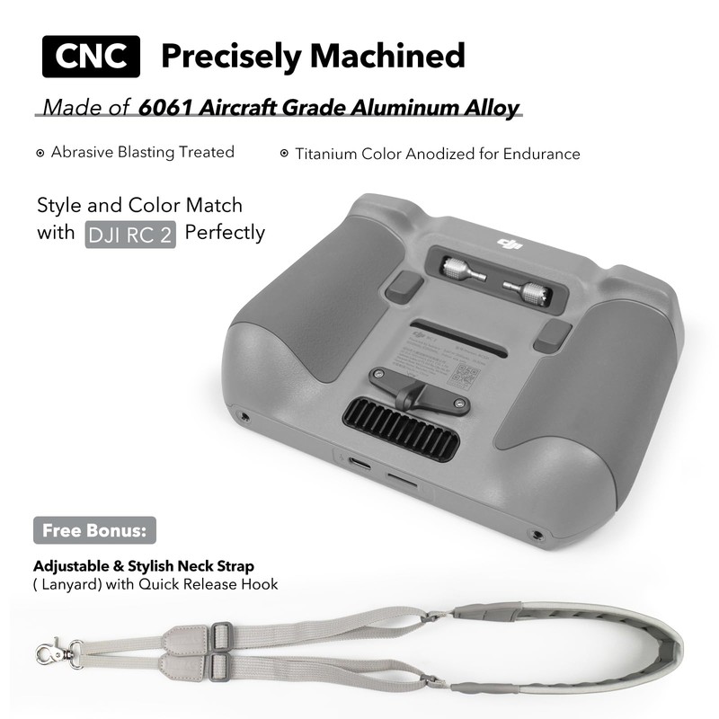 - 【Note】DJI RC 2 NOT included; Actual color of the Aluminum bracket can be a little bit different from the picture due to the nature of Aluminum Anodizing, because aluminum anodizing color from different batches cannot be exactly the same.