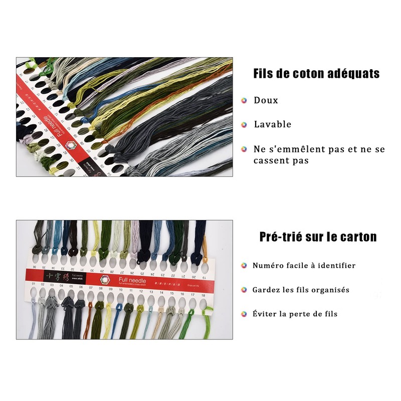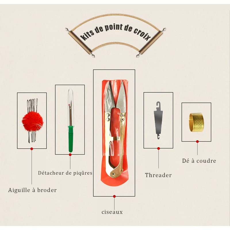 - Punched cross embroidery kit: you will receive everything you need to create a beautiful artwork of cross stitch kits, so you don't need to buy anything separately, including the size of the fabric to the cross stitch: 40 cm × 50 cm, the size of the cross stitch patterns: 32 cm × 42 cm, needle, thread, scissors. Thimble, Thimble, Aux, Threader, Thread Remover and French Tutorial Version
