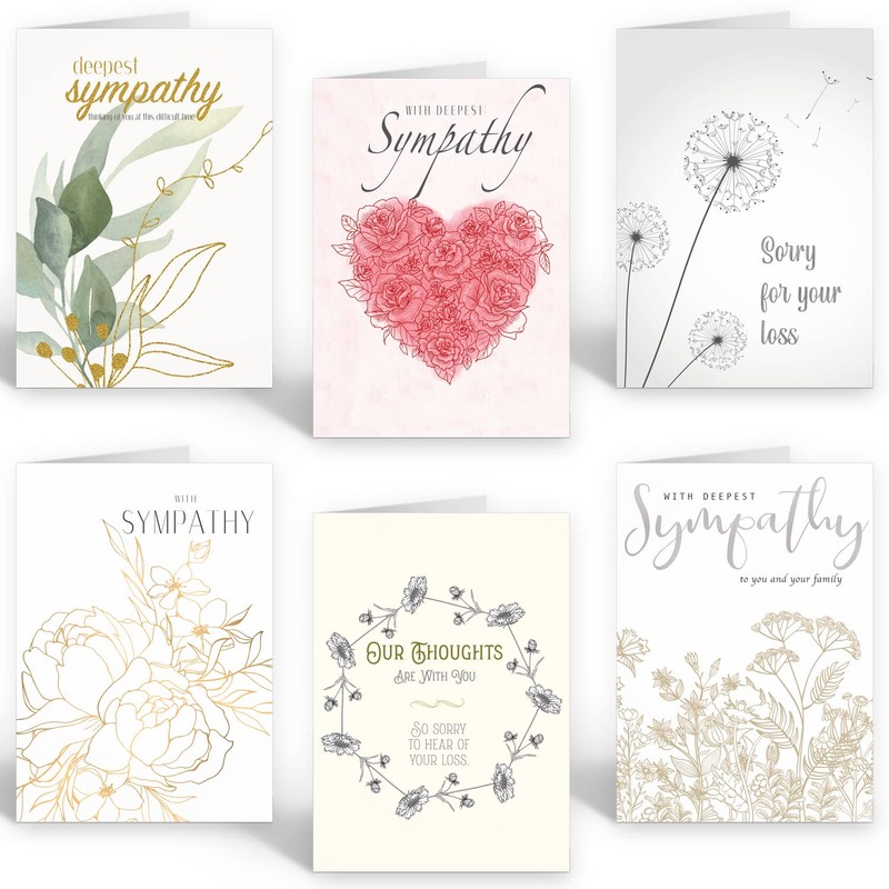 - 30 SYMPATHY CARDS ~ Each pack of cards comes with white envelopes has been designed to express regret of loss with these thoughtfully designed condolence cards. The blend of flowing text and artistic floral print shows them just how much you care during such a difficult time, letting them know in a stylish manner that you are thinking of them.