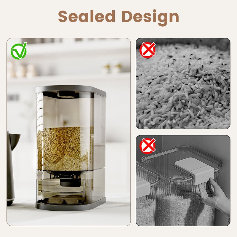 - Embedded Sealed Lid: The unique embedded sealed lid design provides superior moisture protection compared to traditional sealing mechanisms, ensuring a truly sealed and moisture-proof environment to keep your rice fresh and dry.