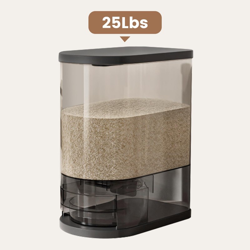 SYNCVIBE 25Lbs Large Rice Dispenser, Cereal Grain Snack Storage Container Bucket with Measuring Cylinder Lid, Kitchen Household Moisture Proof Holder for Soybean (Black, 25LBs)
