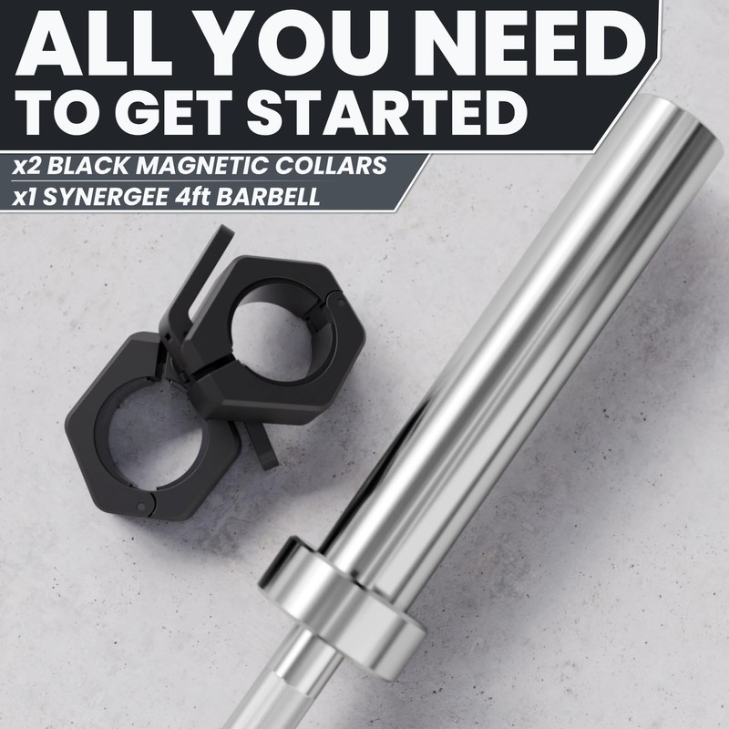 Synergee 4-Foot Barbell with 2” Sleeves and Collars. Rated 500lbs for Weightlifting. Available in Chrome.