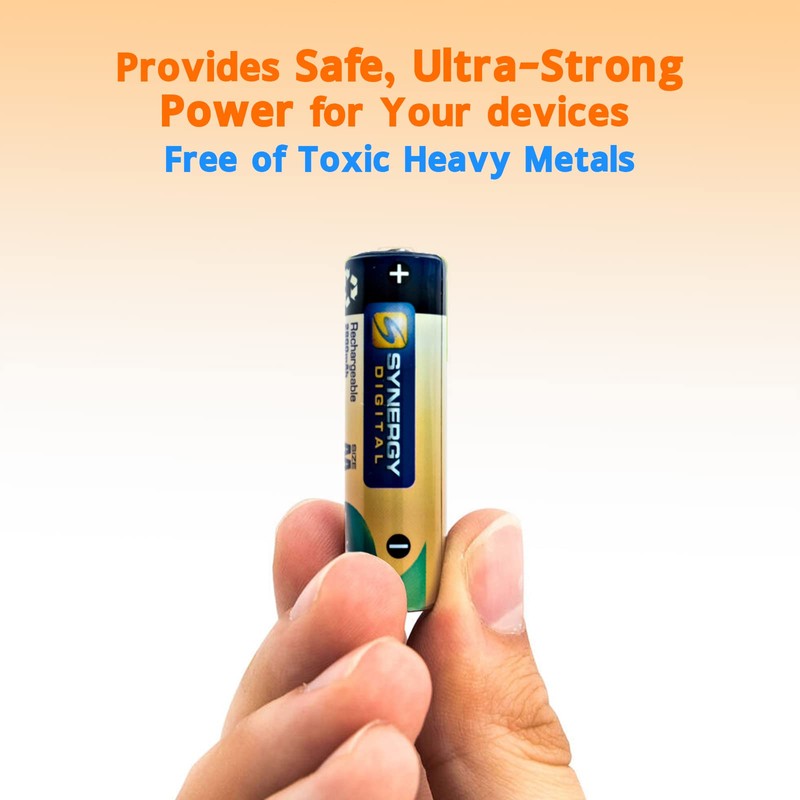 - Rechargeable Design: Make sure your devices are powered and ready to go when you need them. Synergy Digital’s Ni-MH, 2800 mAh Ultra Hi-Capacity AA Batteries are rechargeable, offering long-term value with less waste.