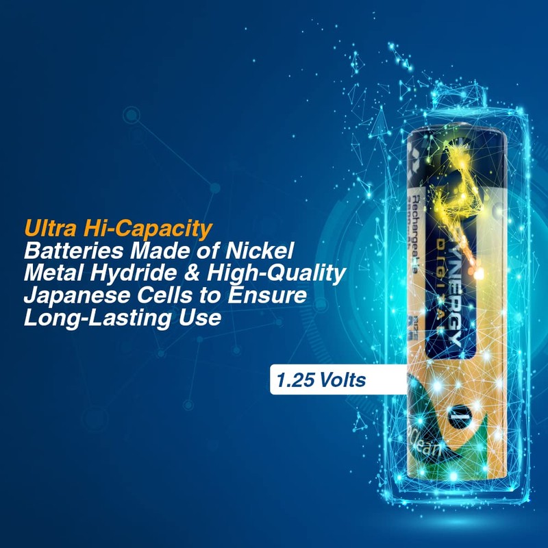 - Included Batteries: This Battery Charger from Synergy Digital includes four 2800 mAh, Ni-MH Rechargeable AA Batteries, made of Nickel Metal Hydride and high-quality Japanese cells to provide long-lasting, reliable power.