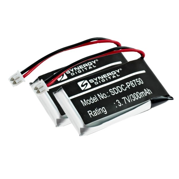 Synergy Digital Dog Collar Batteries, Compatible with Educator ET-300Transmitter Dog Collar, (Li-Pol, 3.7V, 300mAh), Pack Includes: 2 x SDDC-P8750 Batteries
