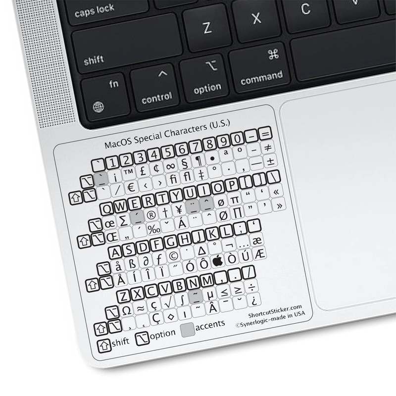 Synerlogic (5pcs) for MacOS Special Characters Cheat Sheet Sticker | U.S. Keyboard Layout Characters | Shortcuts for MacBook Air/Pro (Clear/Black/US/5)
