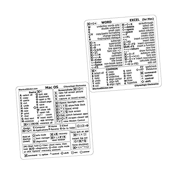 SYNERLOGIC Mac OS (M/Intel) + Word/Excel (for Mac) Quick Reference Keyboard Shortcut Stickers - for MacBook Air/Pro/iMac/Mac/Mini (Clear, 1 Set)