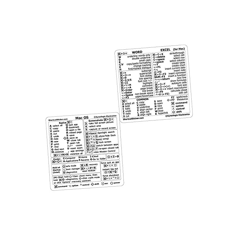 • đź’» ✔️ EVERY ESSENTIAL SHORTCUT - With the SYNERLOGIC Mac OS Reference Keyboard Shortcut Sticker, you have the most important shortcuts conveniently placed right in front of you. Easily learn new shortcuts and always be able to quickly lookup commands without the need to “Google” it.