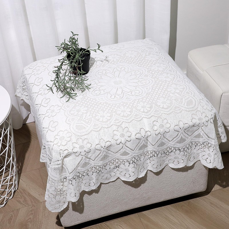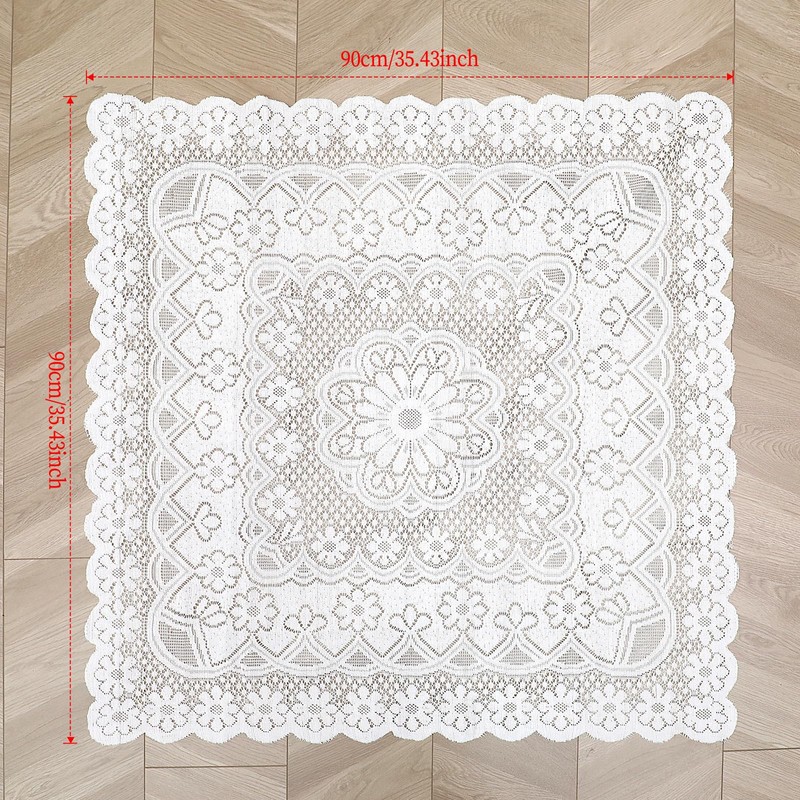 SynHHergyx Small Square Tablecloth Lvory Lace Tablecloth Side Table Cover Crochet Tablecloth for Round Coffee Table Topper Furniture 35 X 35 Inch