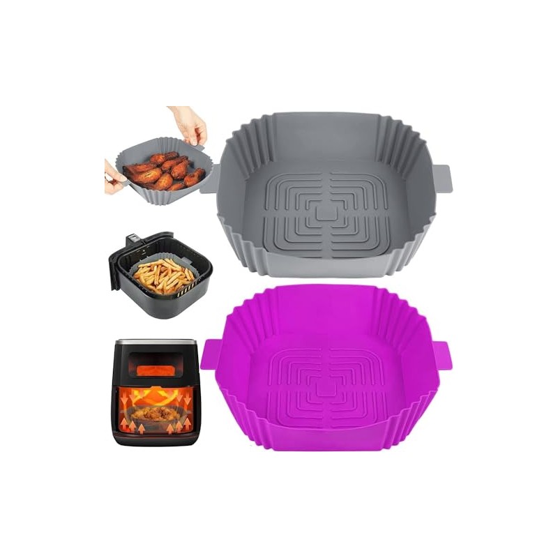 - Easy to Clean & Dishwasher Safe- Lining a square silicone air fryer liners pot keeps your air fryer clean and enjoy delicious foods without burn and sticky. Dishwasher Safe, avoiding the trouble of hand washing. Large size:7.5 inch, fits 3 to 5 QT Air Fryers.