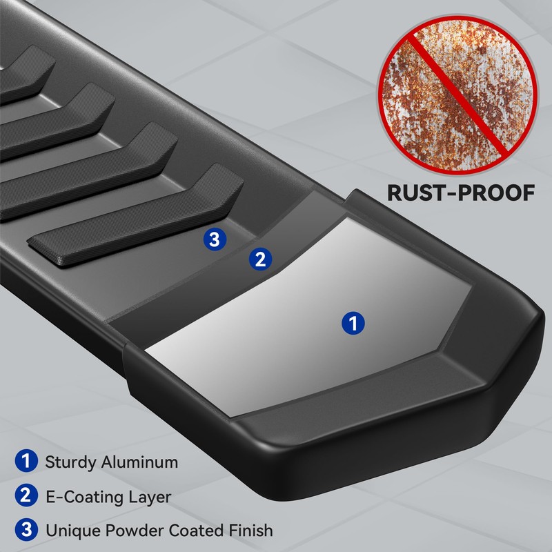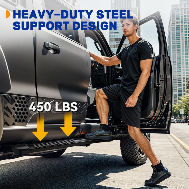 - Enhanced Durability: Our nerf bars feature a textured powder coating for enhanced rust resistance and an aggressive appearance; The bump design further improves slip resistance, ensuring both durability and style for your truck.
