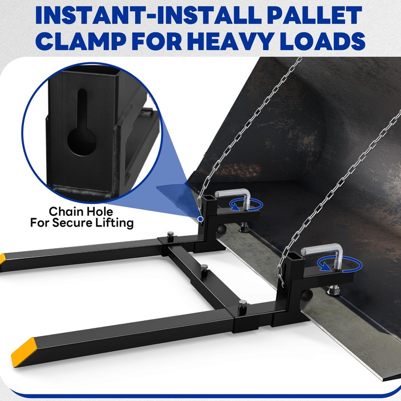 - 45% Reinforced Tubing & Helical Bolt Design: Engineered with 45% thicker walls and a helical bolt system, these clamp on pallet forks maximize durability and stability. The upgraded structure resists bending under heavy loads, making them ideal for demanding tasks like timber transport or rugged debris clearing.