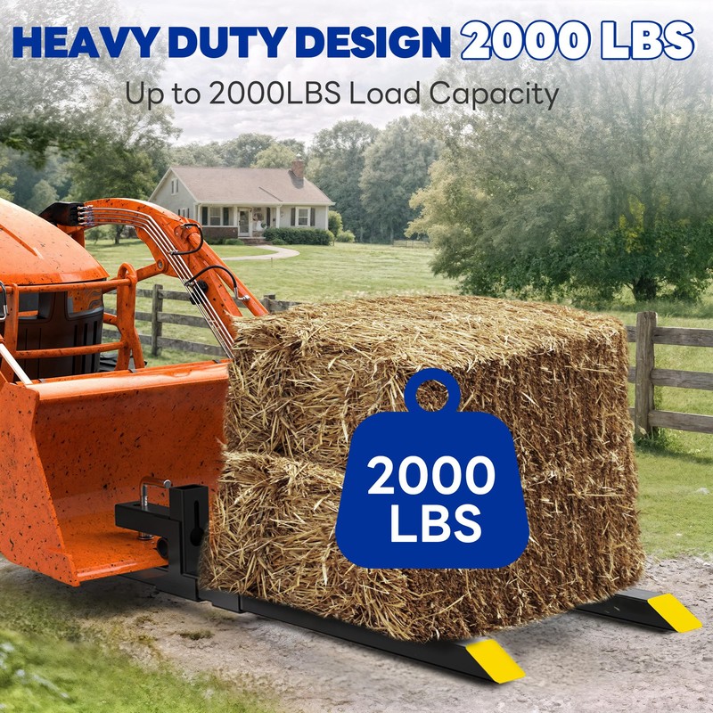 - Heavy-Duty 2000 LB Capacity: Built to handle 2000 lbs when loads are centered deep on the pallet forks. Always calculate total weight (fork + load) to ensure it stays within your equipment’s lift capacity for secure operation.
