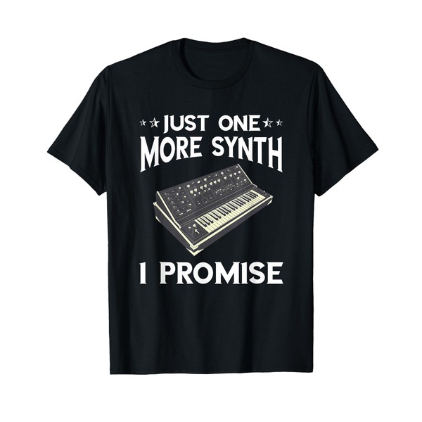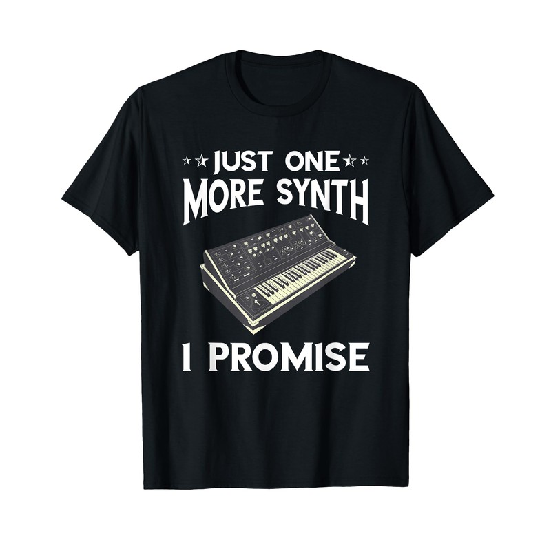 - This novelty Graphic says "Just One More Synth I Promise" and shows a synthesizer keyboard. Awesome for someone who loves electronic music. Ideal for DJs and sound editors who enjoy digital beats.