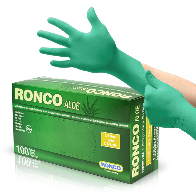 Synthetic Stretch Disposable Vinyl-Blend Gloves, Powder-Free, Non-Sterile, Latex-Free, Aloe Infused, Green Colour, 100 Pack (Small)