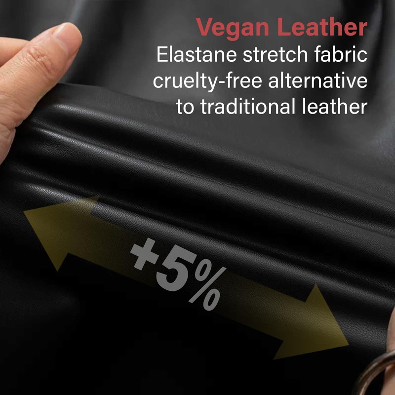 - Premium Quality Material – Synthetic vegan spandex with PU leather finish, featuring 4-way stretch and soft fleece backing for comfort, flexibility, and durability.