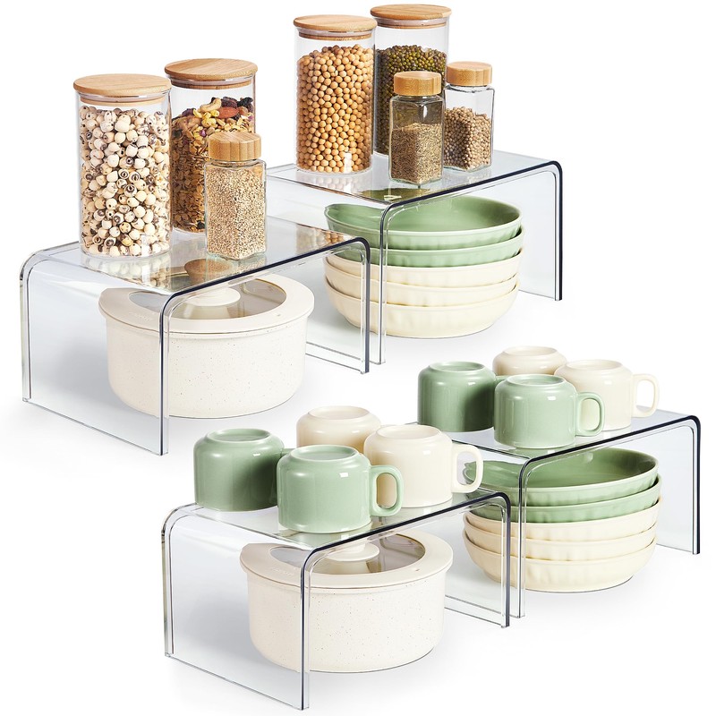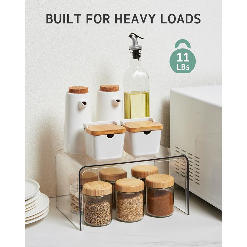 Syntus Clear Cabinet Organizer, Kitchen Shelf Organizers Set of 4 for Pantry Shelf, Plate & Spice Rack Organization