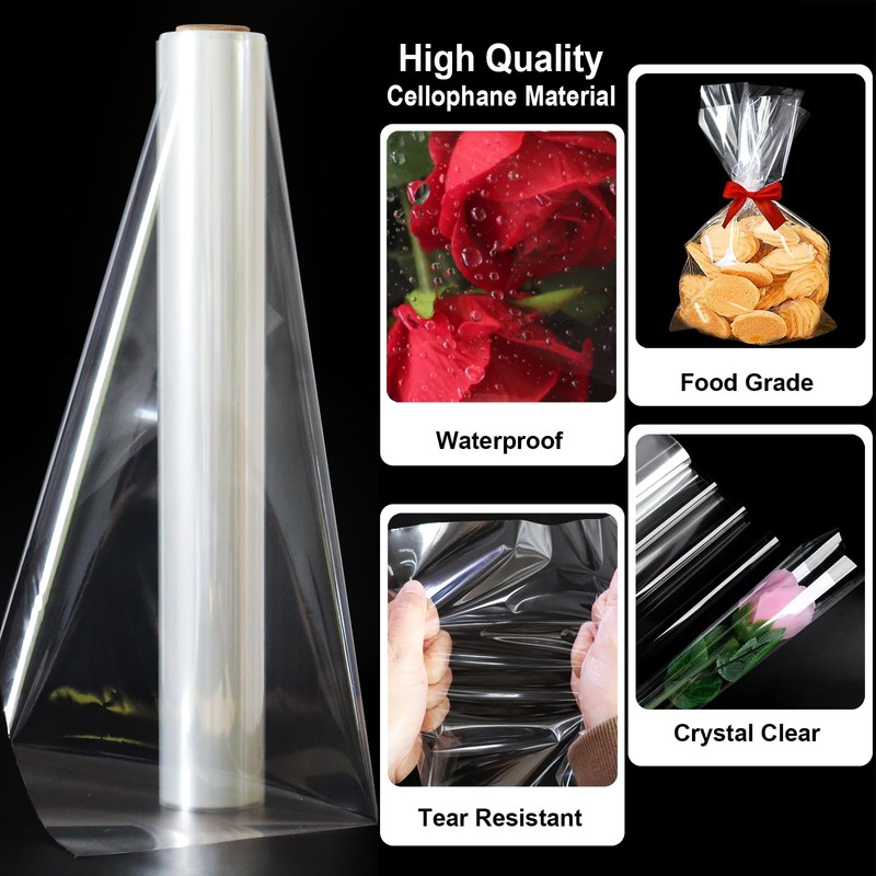 - Safe & Tear Resistant - Made of high quality cellophane material, this clear cellophane paper provides over double better durability than other market options. Not only can provide additional support for gift baskets, wedding flowers, large gifts but meets food safety and it is great keeping moisture or dirt out.