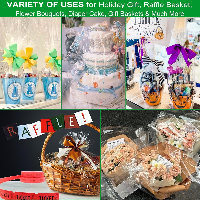 - Crystal Clear Gift Wrap - Easily create professional look to your special events & gifts with this transparent cellophane wrapping plastic. Perfect for both personal and business use, such as flower shop, retail shop to wrap flower bouquets, exquisite gifts, raffle baskets, diaper cake on baby shower, etc.