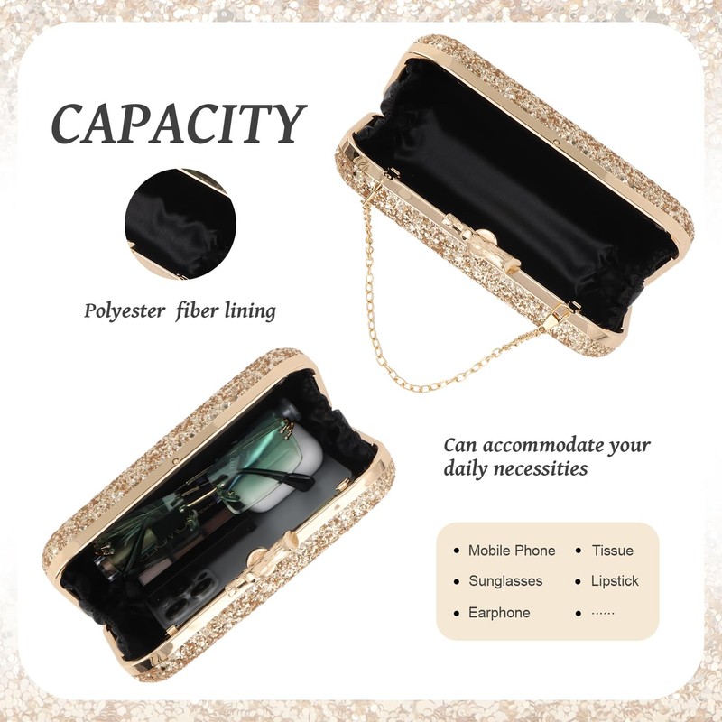 - Features: Clutch come with a detachable straps, three ways to carry, it can be matched according to different occasions. Can be used as a shoulder bag, handbag, satchel or as a chainless clutch.