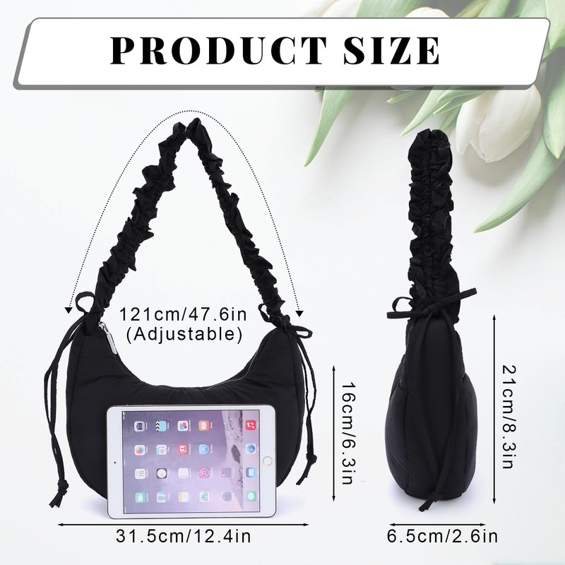 Syrads Shoulder Bags for Women Casual Shoulder Crossbody Hobo Puffy Purse Handbag Lightweight Crossbody Bag,Black