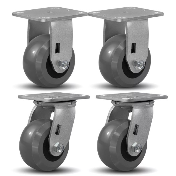 Syrantion 4 Inch Crowned Solid Polyurethane Heavy Duty Casters ,Capacity1500- - 2 Swivel & 2 Rigid