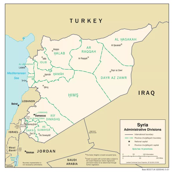 Syria Political Administrative Province Map Country Nation Poster Print