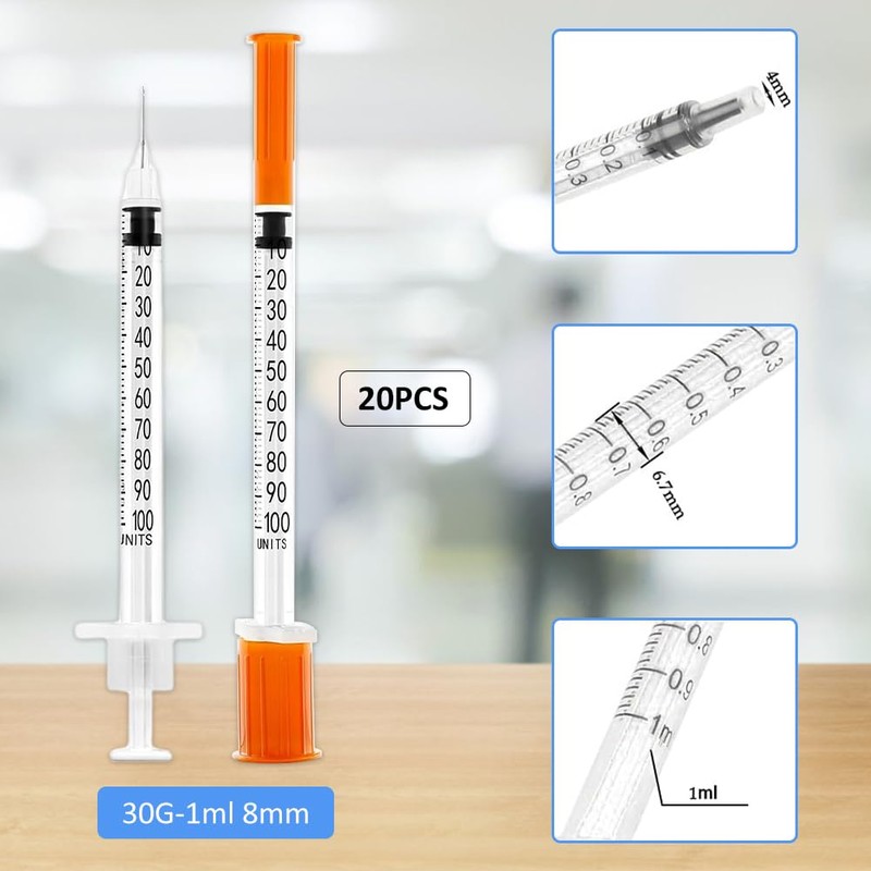Syringes 1ml/cc 30G, Plastic Multi-Purpose Measuring Tools, Plastic Tube for Small Pet Feeding, Industrial Precision Application, Pack of 20
