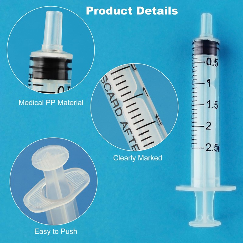 - 【Easy and Accurate Measurement】Our 2.5ml plastic syringes are equipped with clear, easy-to-read calibrations that will not fade after multiple washes, allowing liquids to be measured and dispensed easily and accurately.