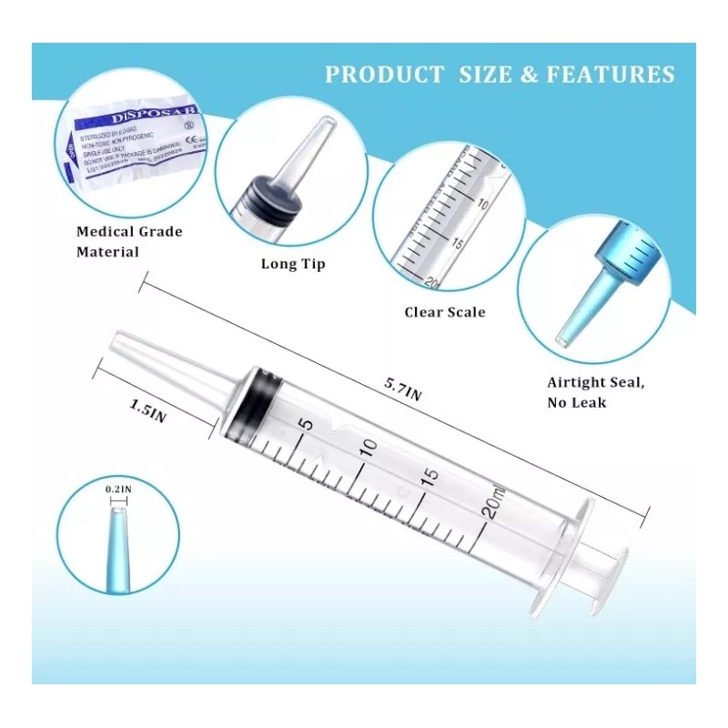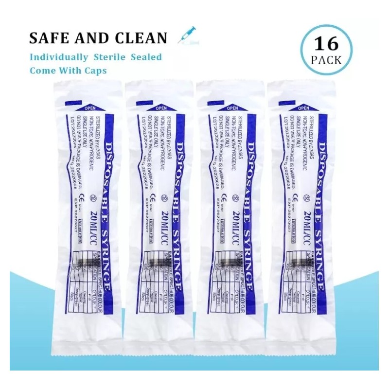 - GREAT VALUE: This pack includes 16 pack 20ml plastic syringes with measurement, each packaged syringe comes with a tip cap. Enough quantity to meet daily use or replacement.
