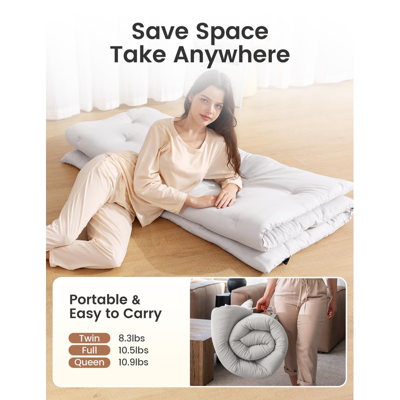 Syrinx Japanese Floor Futon Mattress, Foldable Tatami Sleeping Pad for Adults & Kids, Roll-Up Floor Bed or Bench Cushion