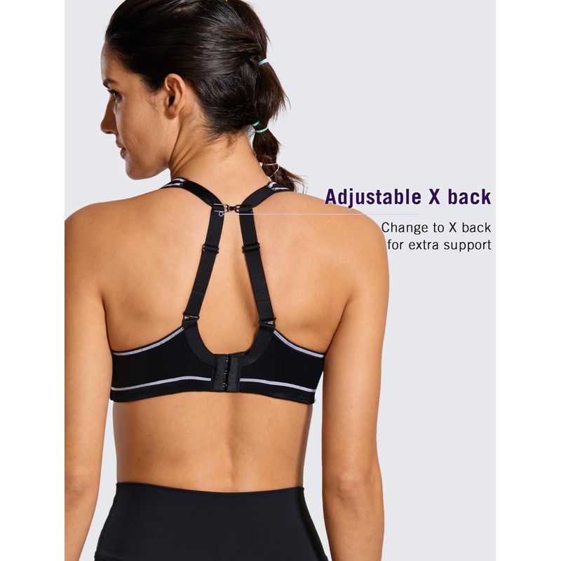 SYROKAN High Impact Sports Bras for Women Support Underwire Cross Back Large Bust Cool Comfort Molded Cup Black 36D