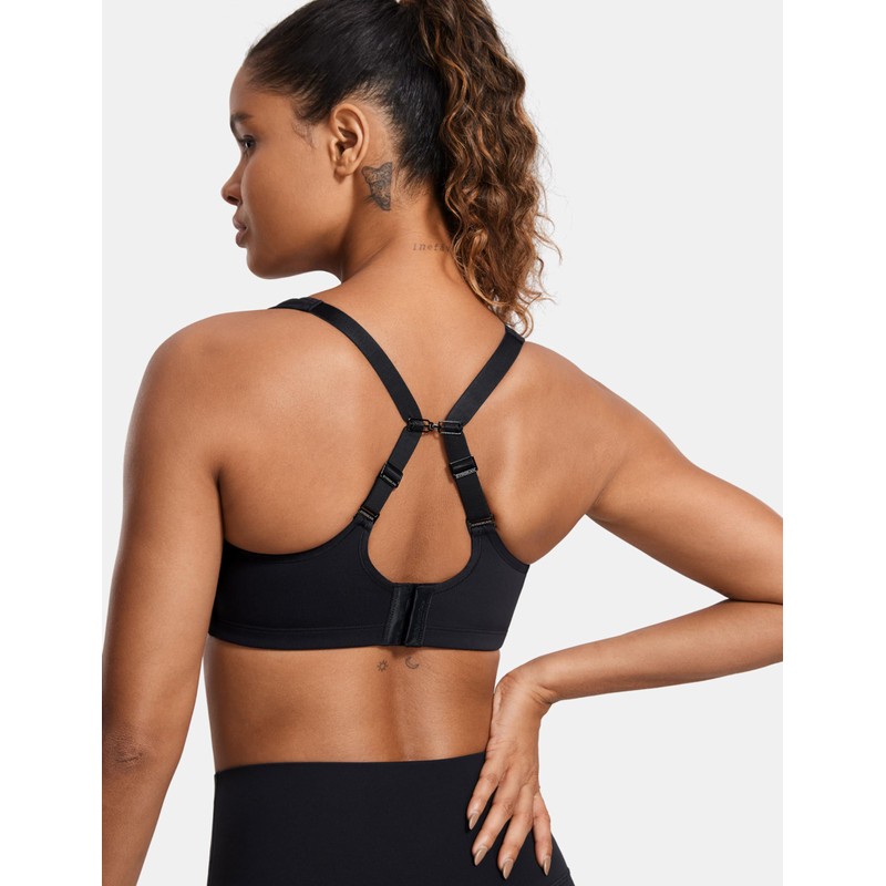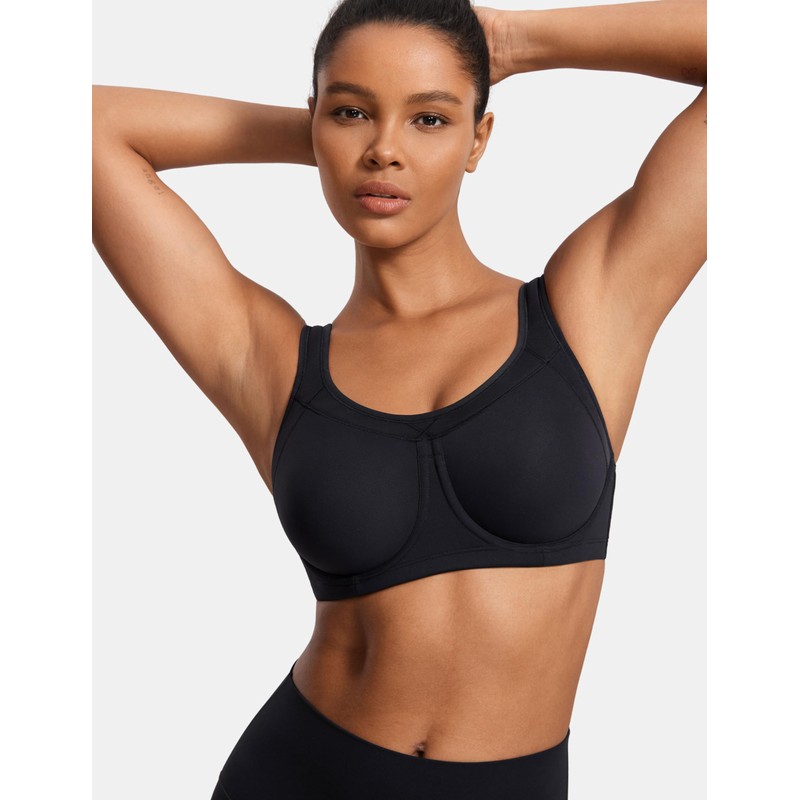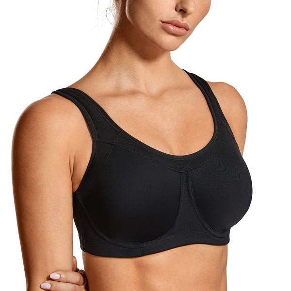 SYROKAN Women's High Impact Removable Pads Sports Bra Underwire Full Coverage Support Workout Running Bra Black 36E