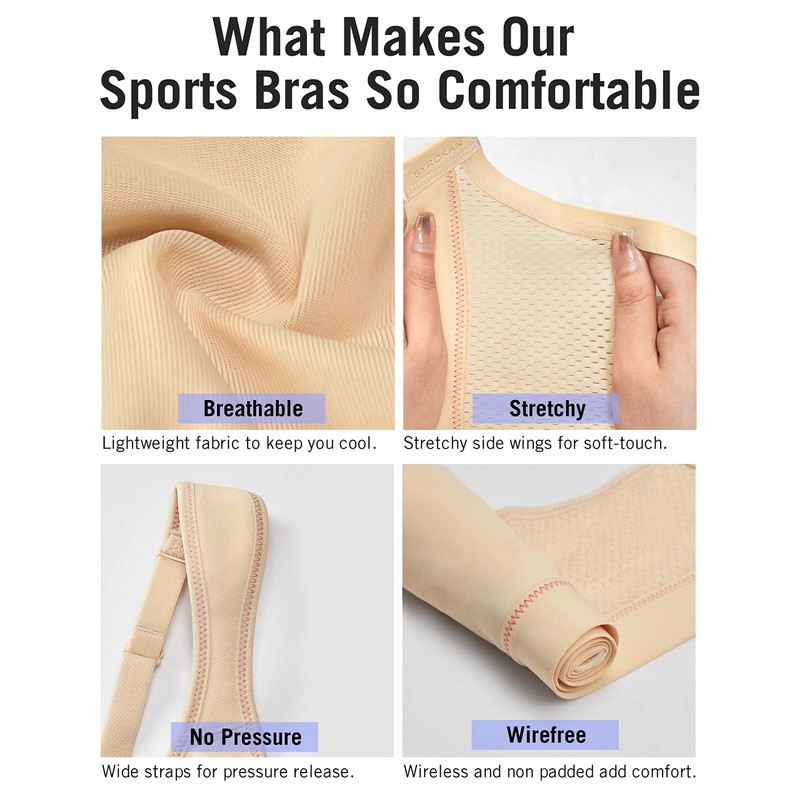 - Soft cups without underwire for freedom of movement and comfort.