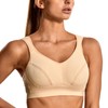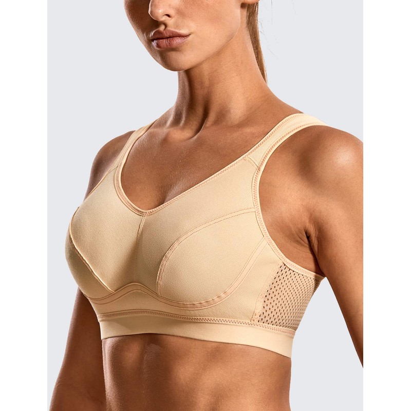 Syrokan Women's High Support Sports Bra, Large Sizes, Full Cups, Without Underwire - beige plain, size: 80B