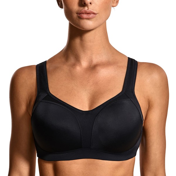 SYROKAN Women's Sports Bra Large Breasts Strong Hold Underwired Bra Padded for Fitness Running Jogging Yoga, black