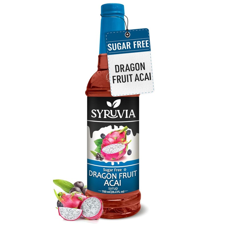 Syruvia Sugar-Free Dragon Fruit Acai Syrup - 25.4 fl oz. Premium Coffee Flavoring Syrup. 0 Calories, Kosher, and Gluten-Free. Perfect for Drinks, Sodas, Shakes, Desserts, and More.
