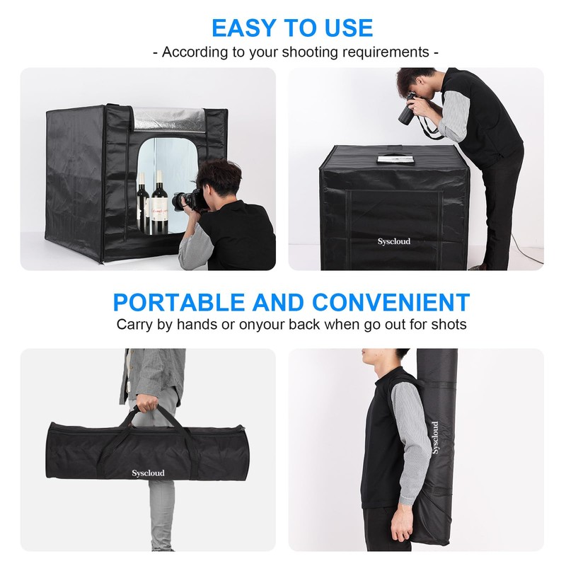 - [Quick Assembly and Portable, Folding Design for On-the-Go Convenience] This folding light box is crafted for quick, tool-free setup in seconds, making it ideal for photographers who need a portable solution. Its compact, lightweight design and included carry bag mean you can transport this 32"x32" photo light box for photography anywhere with ease. Perfect for on-location shoots or creating a compact photo studio setup at home, it combines studio-quality lighting with ultimate portability.