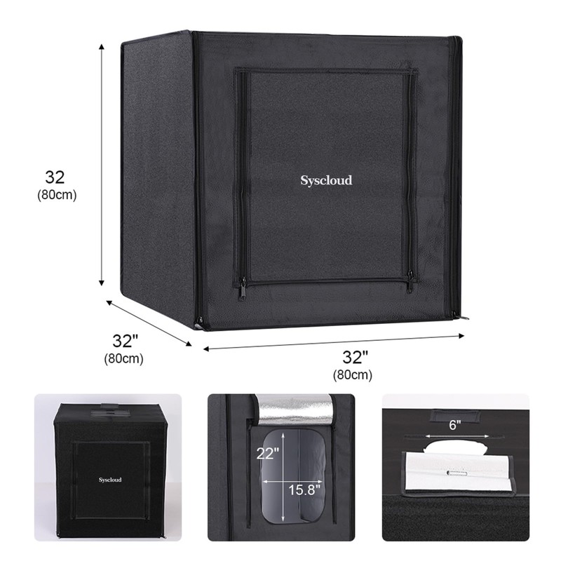 SYSCLOUD Photo Studio Light Box, 32"x32" Professional Dimmable Shooting Tent Kit with 210 LEDs Lights & 6 Kinds Double-Sided Color Backgrounds for Product Photography